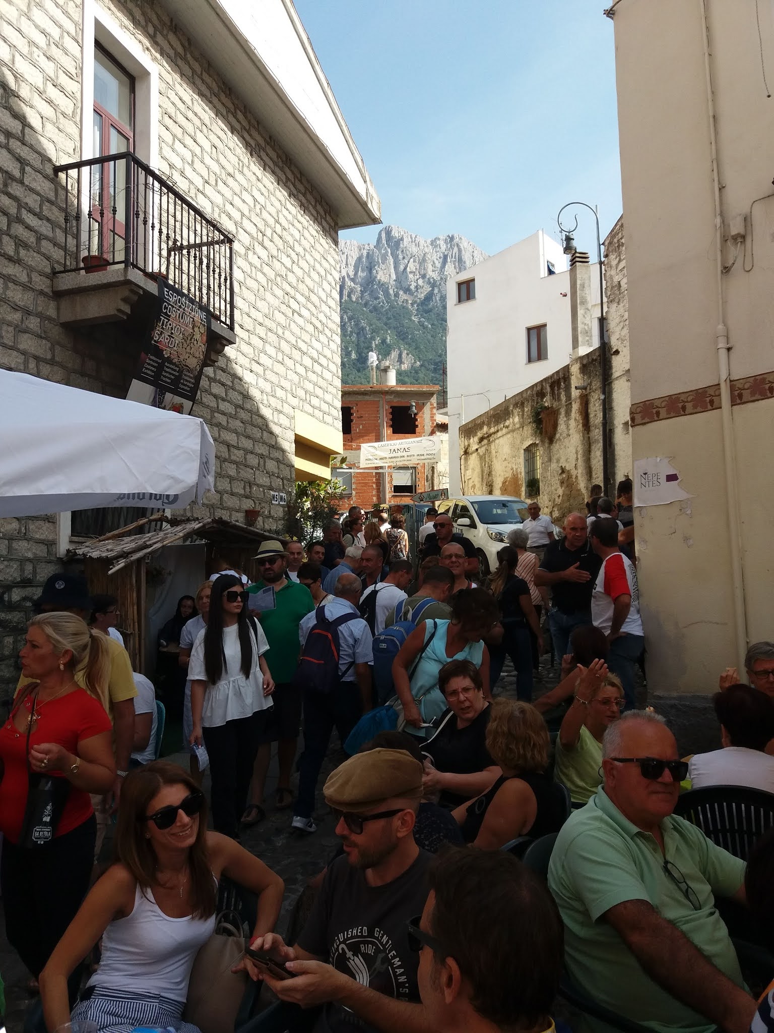 In giro per le strette viuzze di Oliena, assembramenti di curiosi per visitare le case dalle forme strane.