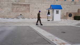 Piazza Syntagma (Piazza della Costituzione). Qui ci sono il Palazzo del Parlamento e la tomba del Milite Ignoto, costantemente vigilata dagli Evzones, le guardie greche che ogni giorno danno luogo allo spettacolare cambio della guardia. Il monumento è fiancheggiato dal testo della famosa orazione funebre di Pericle dedicata ai caduti della guerra del Peloponneso che nel 431 a.C. vide contrapposte Sparta e Atene.